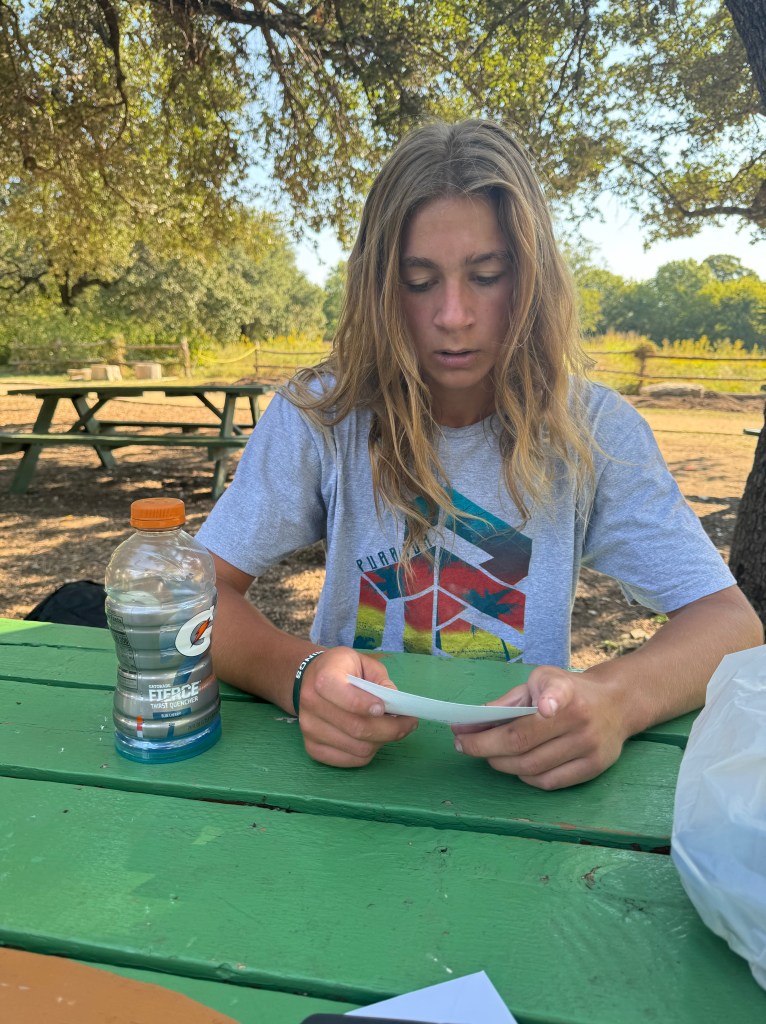 Sunday morning, we got up and had breakfast then drove to Cedar Ridge Preserve for Difficulty Day. Cale had to hike 10 miles (1-mile loop trail 10 times). I gave him a card to read before each mile to give him something to focus his mind on.